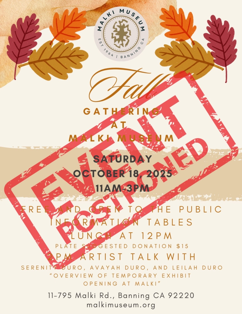 Come visit Rivers & Lands Conservancy staff at the Malki Museum’s annual Fall Gathering on Saturday, October 18th. We will have a booth where will be offering a hands-on activity for kiddos while sharing information about our conservation projects and volunteer opportunities. This family-friendly event is free for all and includes lectures, food tastings featuring Cahuilla harvest foods, and demonstrations such as Cahuilla bird singing, basket weaving, acorn leaching and grinding, pottery making, and flint-knapping. Check out the flyer below and click here for additional event information. 🍂