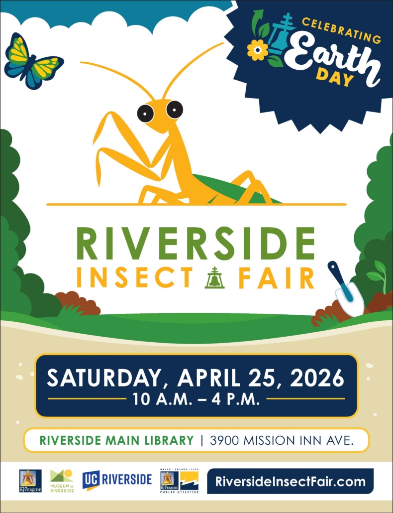 Enjoy some unique Earth Day festivities by coming on down to the Riverside Insect Fair on Saturday, April 25 from 10am – 4pm at the Riverside Main Library. Visitors will get the chance to enjoy art from the Riverside Arts Council, experience storytime with the Library, learn how to start your own bug collection, explore a day in the life of UC Riverside’s entomology grad students, and much more! Click here for more details on this free, family-friendly event. 🦋🐝🪲🐞